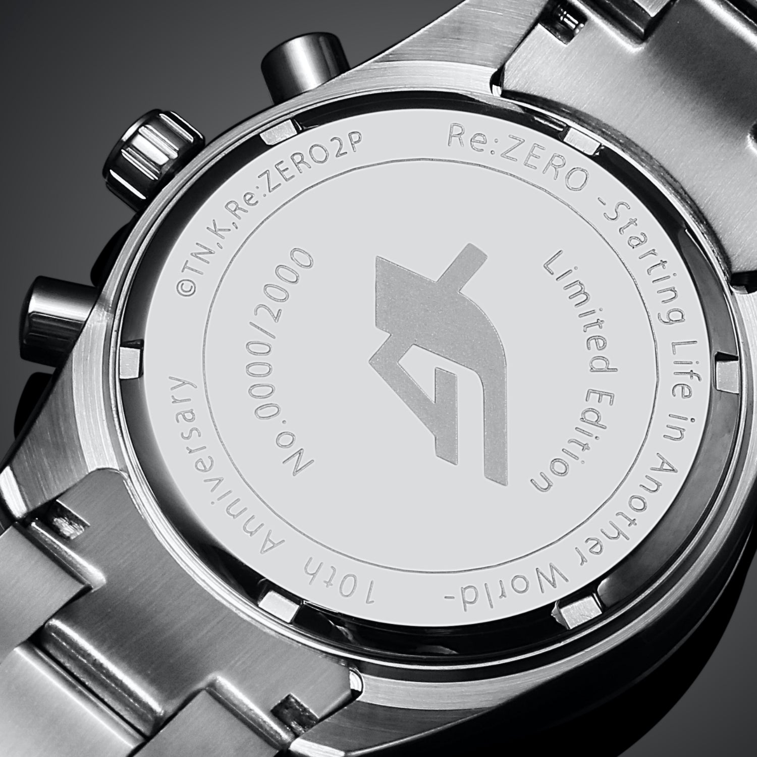 限定 2000 pointsThe warm dark gray dial is inspired by Ram's maid outfit. The chronograph hand, which is designed with her favorite ribbon as a motif, rotates to indicate the time. Special limited production of 2000 pieces. The back cover of the watch is engraved with a unique edition number just for you.