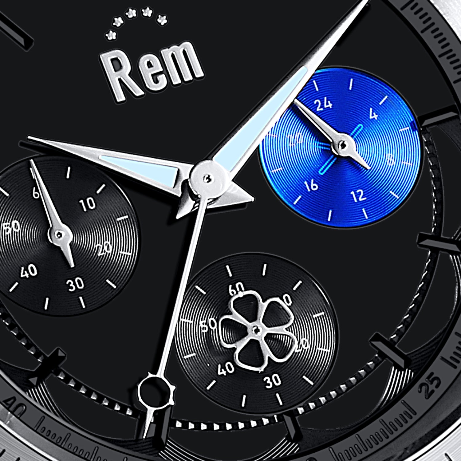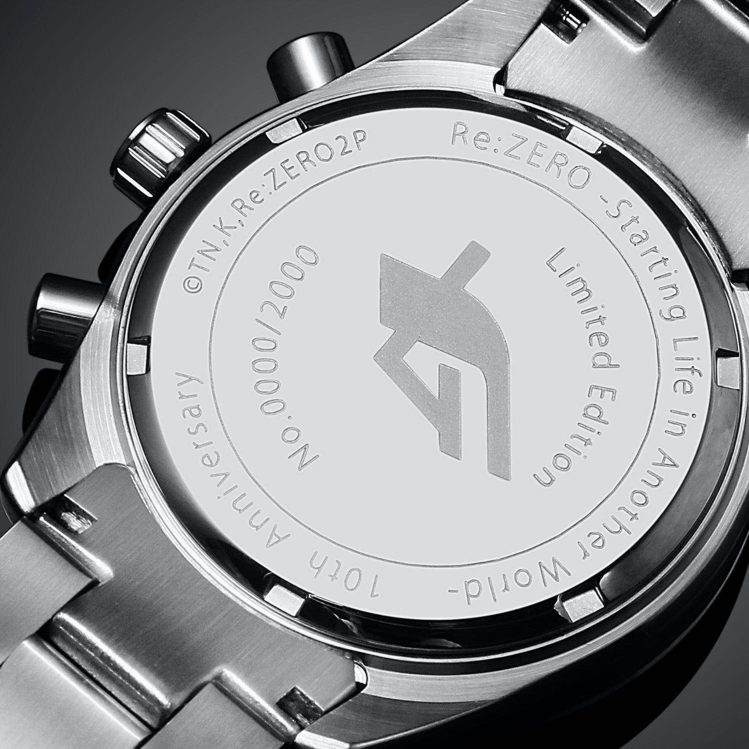 限定 2000 pointsThe warm dark gray dial is inspired by Rem's maid outfit. The chronograph hand, modeled after her favorite ribbon, rotates to indicate the time. Special limited production of 2000 pieces. The back cover of the watch is engraved with a unique edition number just for you.