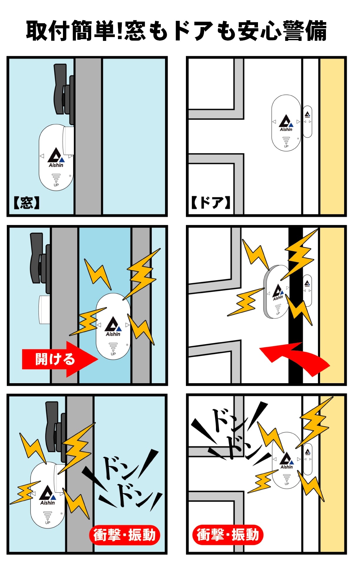 〈アイシン〉大音量130dB 窓&ドア用防犯アラーム