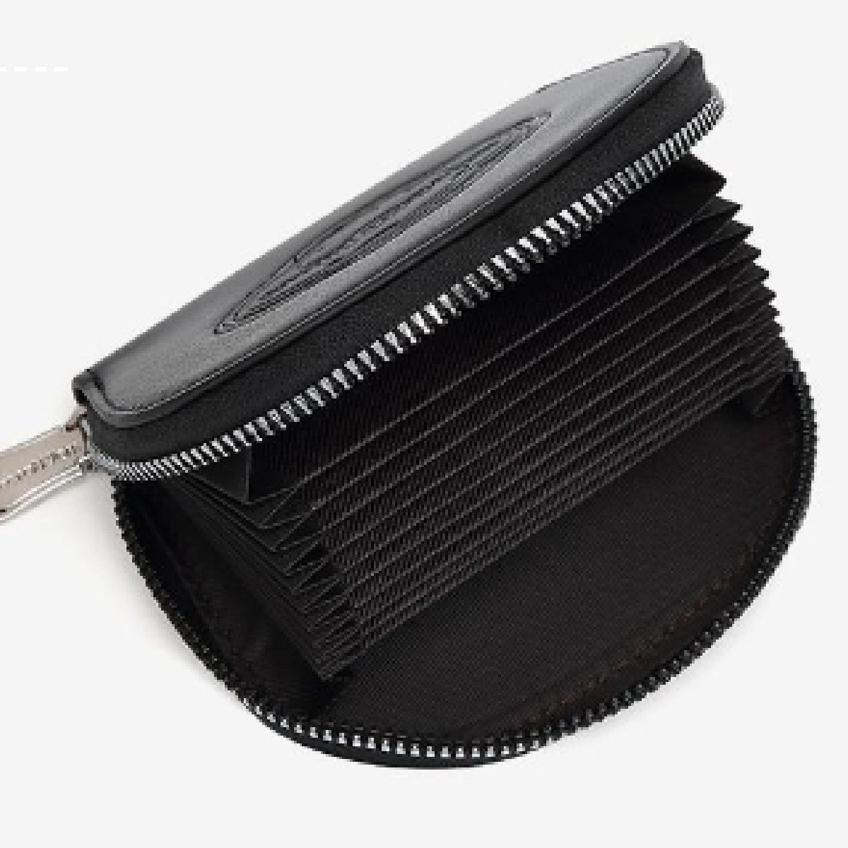 カード最大11枚収納可能。ありとあらゆる場所に散りばめられたカードを一つに集約。取り出しやすさと見やすさを優先し、じゃばら式を採用。たっぷり収納してもファスナー付きでしっかり閉めて盗難防止◎