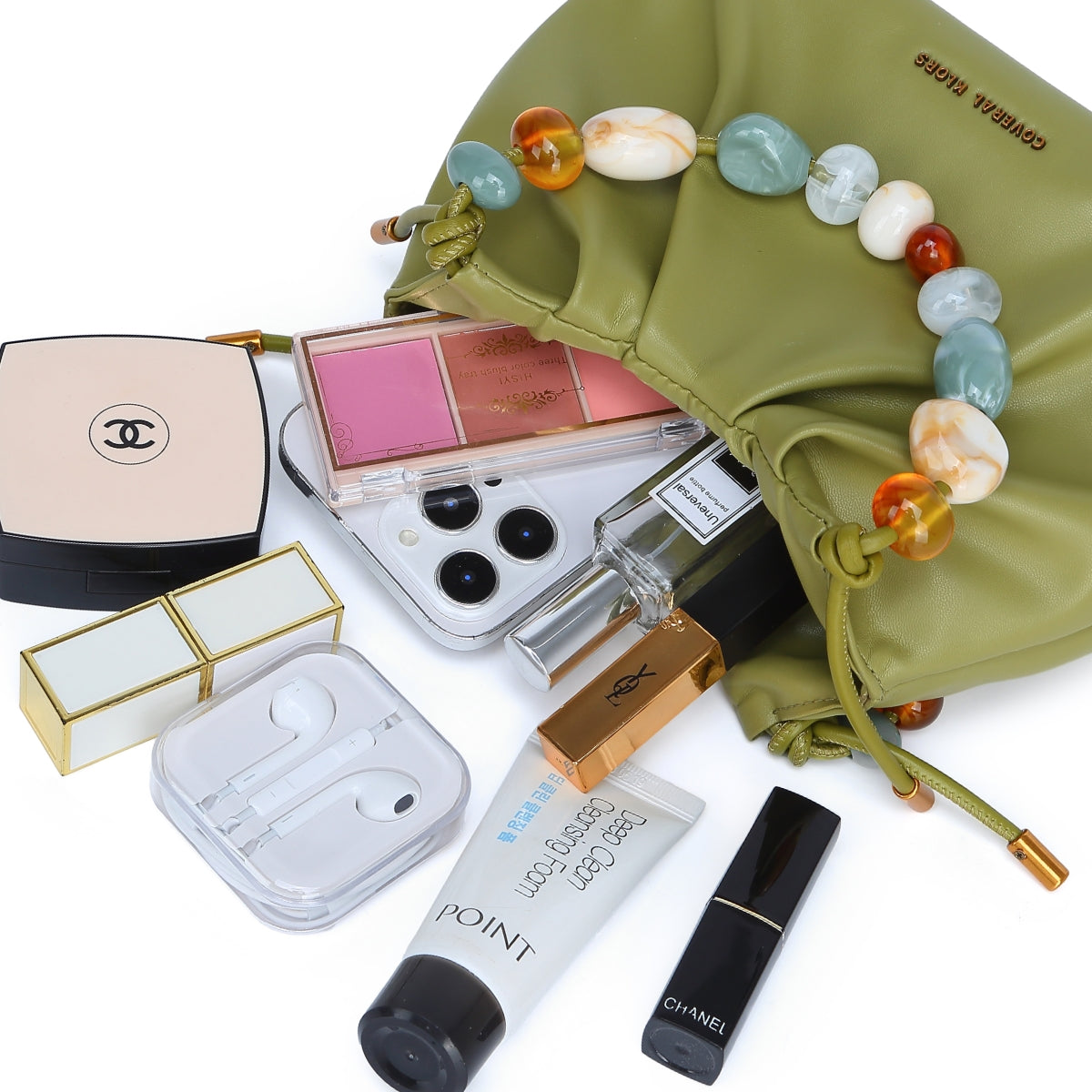 【ドレープをよせた丸みのあるフォルムがおしゃれ】オシャレなフォルムにどんなコーデにも相性GOOD◎。ブラック、ホワイトの人気のカラーをラインナップ。上品な光沢とシボが本革の高級感漂わせるPUレザーを使用。手に吸い付くようなしなやかな肌触りでどんなシーンでも注目されること間違いなしです。
