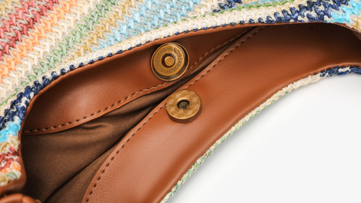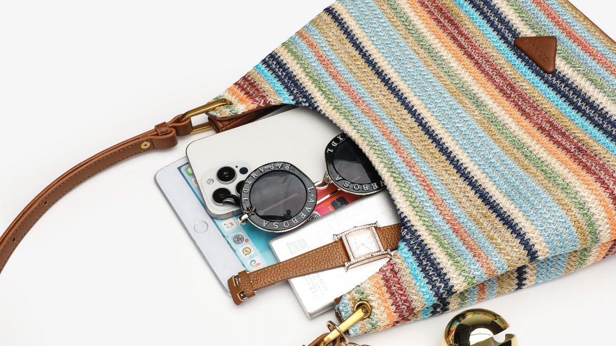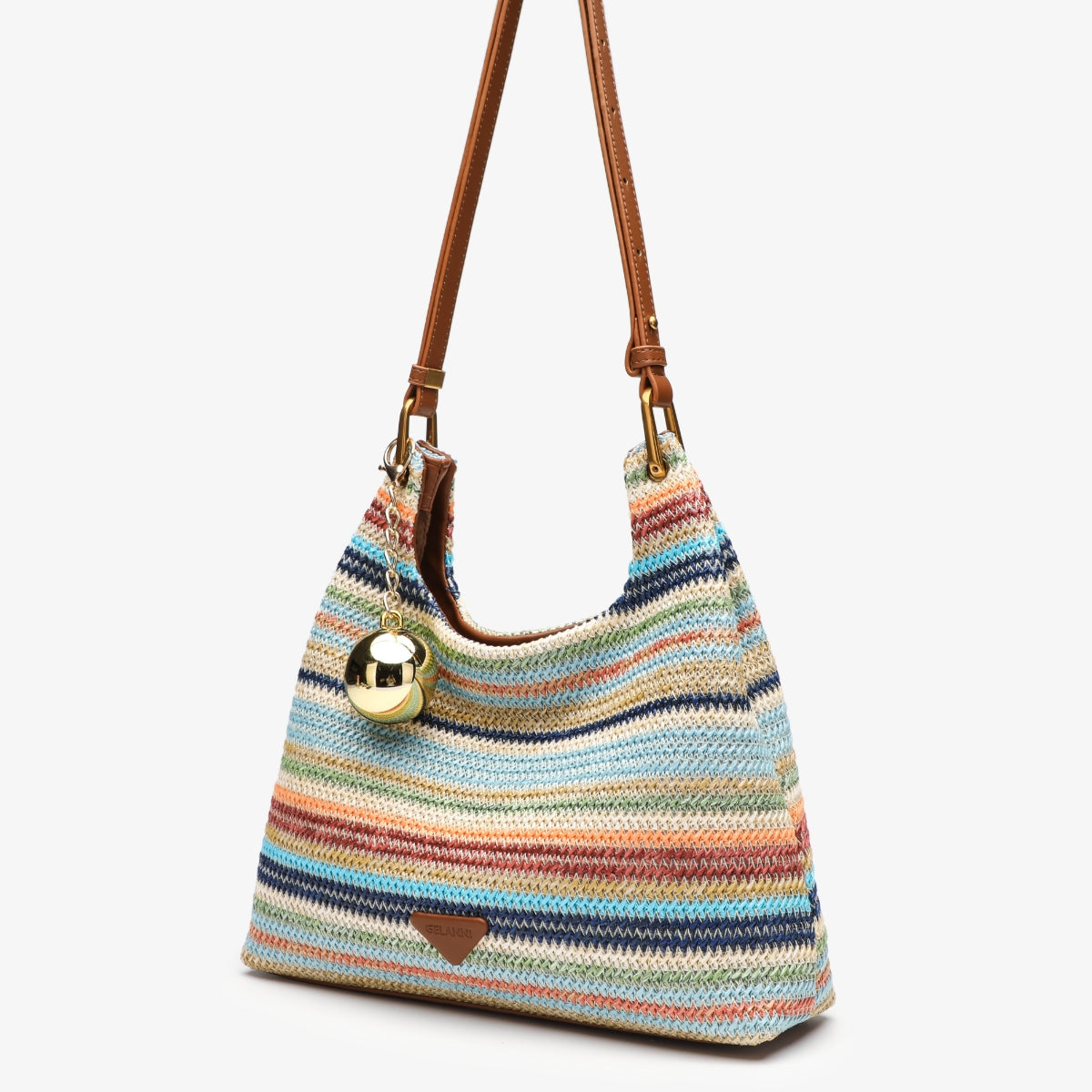 - 【大人かわいいボヘミアンスタイル】カラフルでやさしい色合いが、大人の魅力を引き立てる。持つだけで爽やかな印象に。お出かけがもっと楽しくなる、エレガントな編みバッグ。さらにLadduの高級糸を使った丁寧な縫製。ほどよい抜け感のある編み目が、ナチュラルな雰囲気をやわらかに演出。