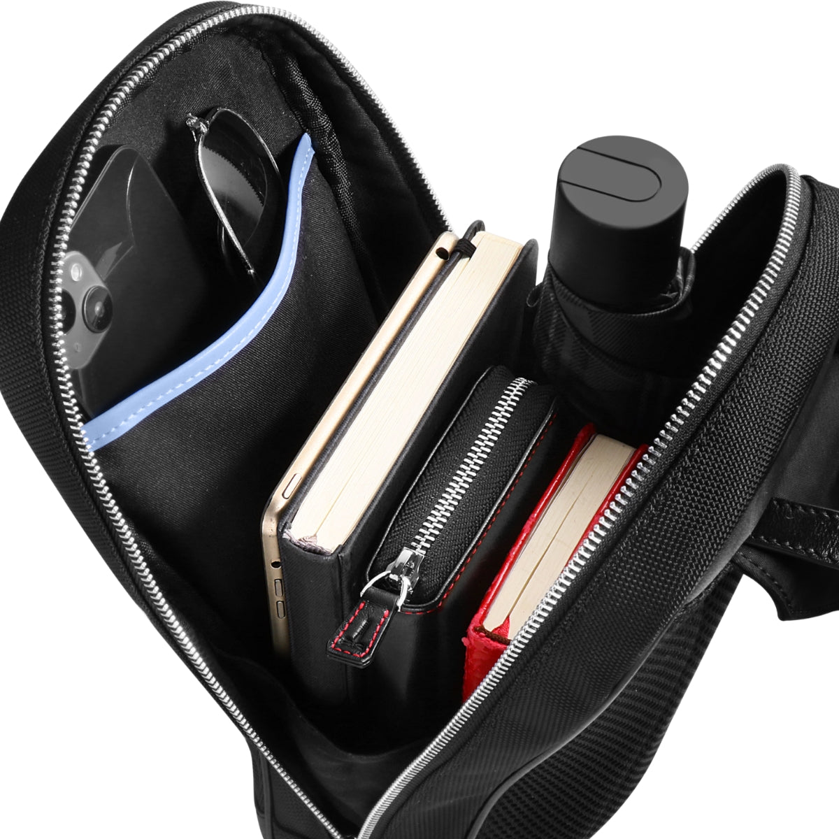 スマートフォンの収納に便利なフロントポケットや、2ヶ所のオープンポケットを搭載した収納力抜群のメイン スペースで毎日の暮らしをサポート。バッグ上部のイタリアンレザーには公式ロゴ、バッグ下部にシティーハンターでおなじみのトンボを刻印。