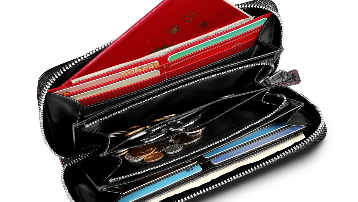 本革、一部PUレザー、YKKファスナーカードポケット×16、フリーポケット×2、札入れ×2、小銭入れ×1(3層仕切り)