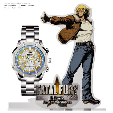 限定 2000点『餓狼伝説 City of the Wolves』発売記念。テリー・ボガードをテーマに、“South Town's very own Legendary Hungry Wolf (サウスタウンで戦う伝説の狼) ”の魂を叩き込んだ、迫力のクロノグラフ腕時計。