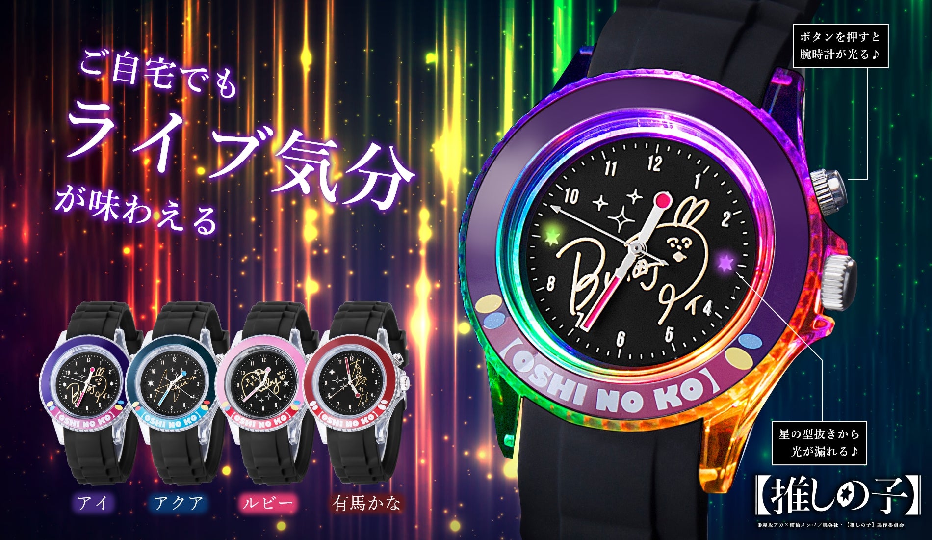 舞台照明のように腕時計が次々とあざやかに光を放り、