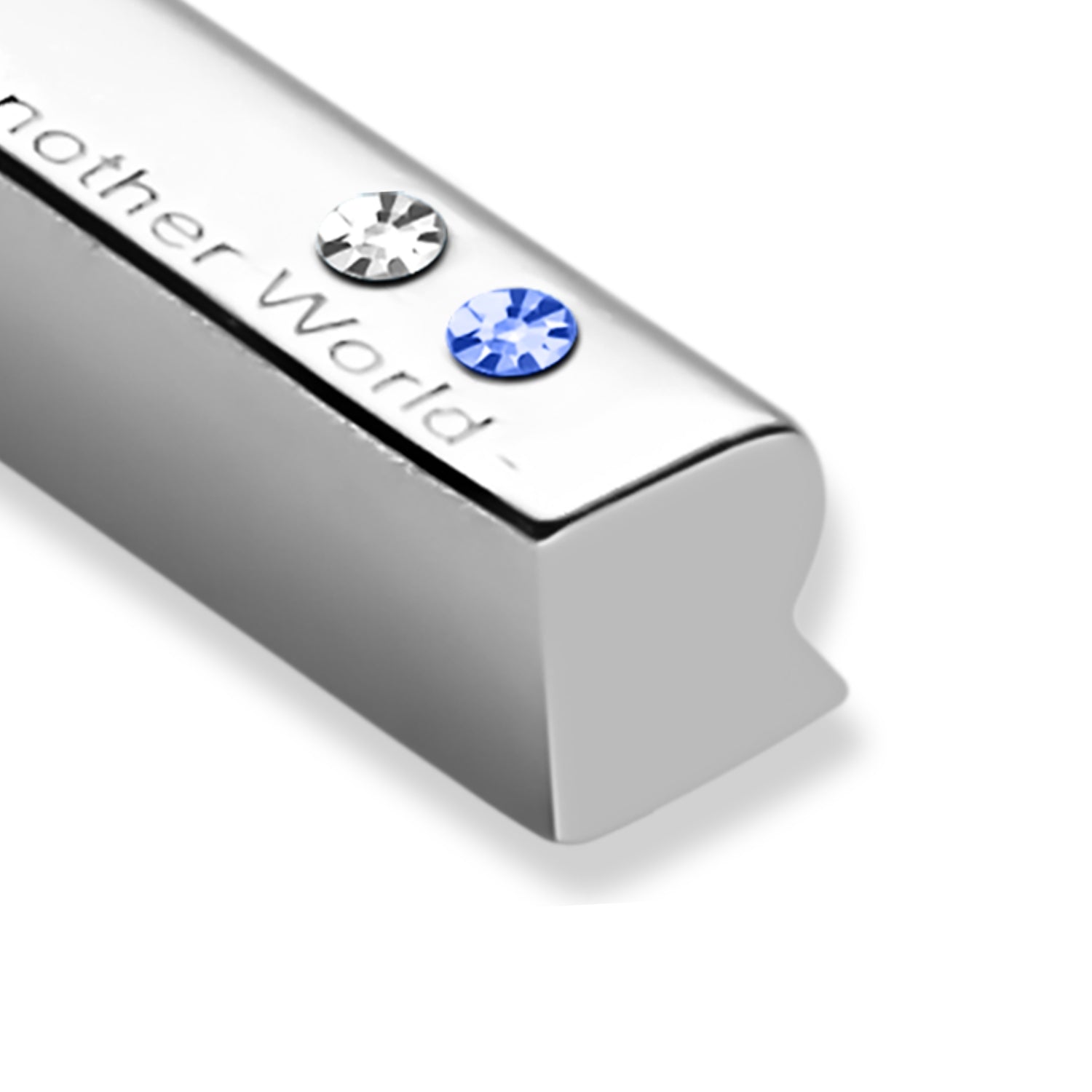 Rの文字が隠されたスティックチャーム。天然ダイヤモンドの輝きに加え、レムをイメージしたカラーストーンが華やかなアクセントに。